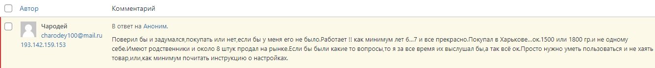 Ніщо так не підтверджує говіність товару як продаваний, який намагається його відстояти. Сьогодні мені прилетів коментар, який зі зрозумілих причин був вилучений