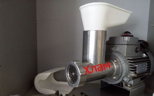 Проблема тут навіть не в тому, що машинка не універсальна, або що вона не здатна обробити яблука. Але вона заявлена як томатний прес (читай для помідорів) та м’ясорубка. А якщо вам потрібно перемолоти м’ясо із прожилками? А якщо ви пропускатимете через неї заявлений в інструкції виноград з кісточками? А на мій погляд помідори від абрикос за консистенцією не особливо відрізняються. Самим же апогеєм нашого апофеозу став момент, коли я зібрав радянських часів м’ясорубку, вдягнув насадку для обробки томатів, прикрутив за допомогою болта замість ручки шуруповерт, і про диво, акумуляторний шуруповерт зміг зробити все те, що не зміг зробити томатний прес зі здоровенним важким мотором від 220 Вольт. І тут складно сказати, більше образи від того, що у нас продають за ту ціну, або що на нашому ринку немає товарів,