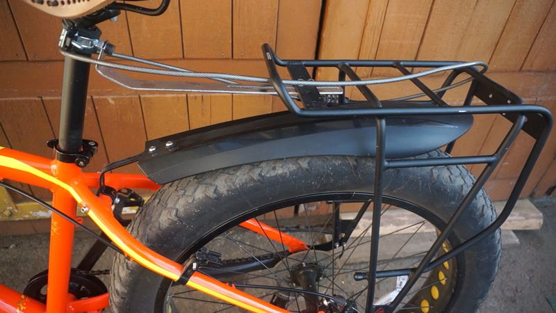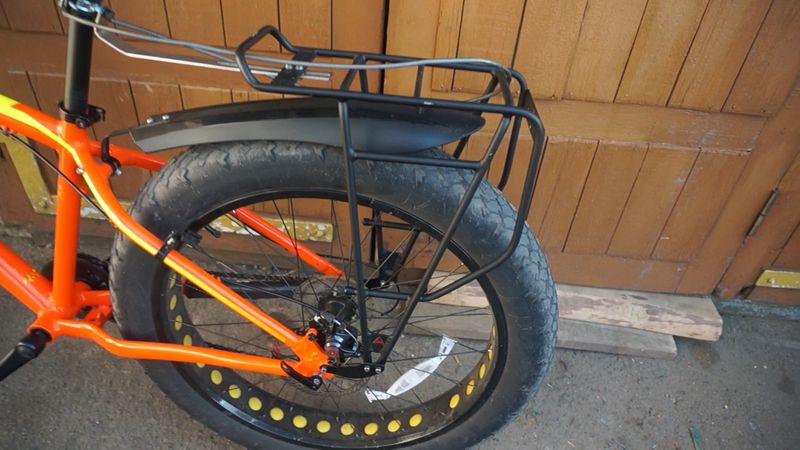Багажник у мене Axiom Fatliner. Алюмінь, важить близько півкілограма, міцна рамка, універсальне кріплення до велосипеда (навіть до перекрученого донатного кріплення підійшов, на диво). Можливість ззаду прикріпити габарит, а також прикріпити вело-баули радує непомірно. Багажник за моїми мірками дуже широкий. Коштував, щоправда, відповідно. У районі 1600 грн, і так, це дуже дорого, але у нас на ринку в ту ж (або біля неї) ціну пропонують саморобку. Чи варто заощаджувати 0 грн на багажнику? Не впевнений. У той же час якщо ви плануєте фет використовувати навіть для походів, якісний багажник дозволить вам без проблем перевозити досить габаритні і важкі вантажі, не турбуючись про те, що він десь у дорозі розвалиться. Я не назву багажник для фетбайка першочерговою покупкою, але особисто мені комфортніше, коли він є. Після триколісника відчуваю дискомфорт,