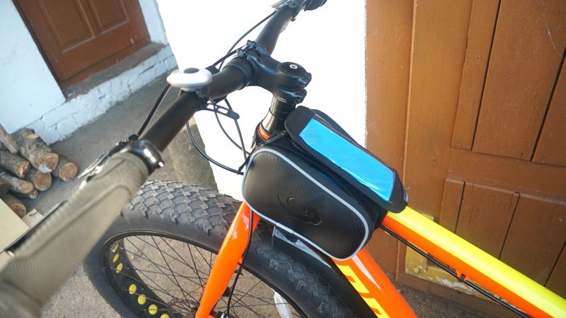 На рамі у мене сумка фірми Rockbros куплена за 300 грн або близько того. Умовно не дорого, умовно практично, але в цілому допомагає, доки не знайдеться щось ще більш підходяще. Стара сумка з одним великим відділенням по центру місцями була трохи зручніша, але й у цю цілком собі може поміститися powerbank з парою телефонів, ключами, грошима та рем. ключі для велосипеда.
