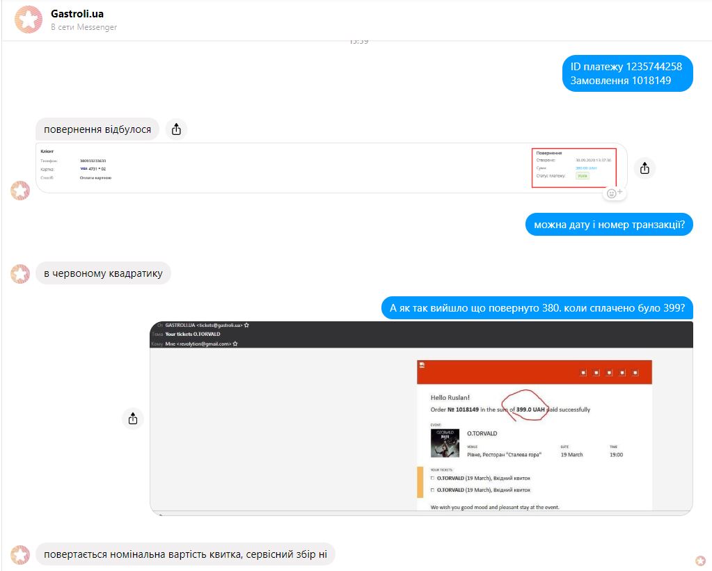 Кілька днів тому я написав їм на сайті листа щодо повернення коштів за квиток. Якоїсь відповіді на нього мені не було. Я вирішив спробувати набрати їх по телефону, вказаному на сайті – телефон взагалі мовчав. Написав у групі у Фейсбуці