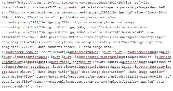 Як бачимо – код виріс разів у 5 приблизно. Візуально змін немає. Можна або копіювати-вставляти тільки частини тексту (без зображень, посилання на зображення залишати, я так і робив частково), або щось повторно робити з зображеннями. І ні, відключення Джетпаку (котрий там вказаний у коді) дало лише частковий результат – кількість тексту трішки зменшилась. В іншому те ж саме.