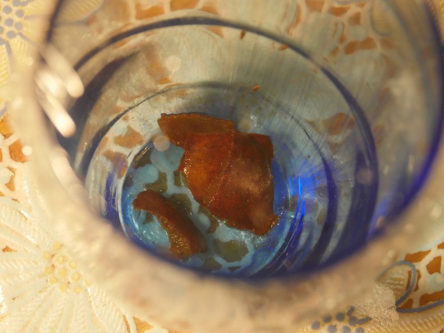 У нашому випадку продуктом були груші, які були не крайнього ступеня зрілості і які були нарізані скибочками. Якщо використовувати банан або натерте на великій тертці яблуко – швидше за все мошки будуть летіти в нашу пастку. Як результат ось що у нас вийшло: