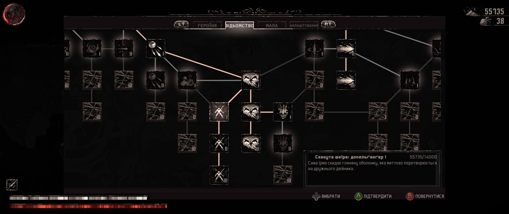 Механіка гри хоч і взята зі схожих проектів, але, дещо, кульгає. Як приклад – є здатність, яка дозволяє перелітати через великі відрізки. І це перший дзвіночок під назвою “привіт Hollow Knight!”. Але щось пішло не так, і якщо в Hollow Knight це була досить зрозуміла плюшка, завдяки якій ми могли проноситись крізь половину мапи, то тут воно мало того що дивно працює, так ще й має певні “штрафи” за те, що зроблене через сраку. Приклад? Ок.