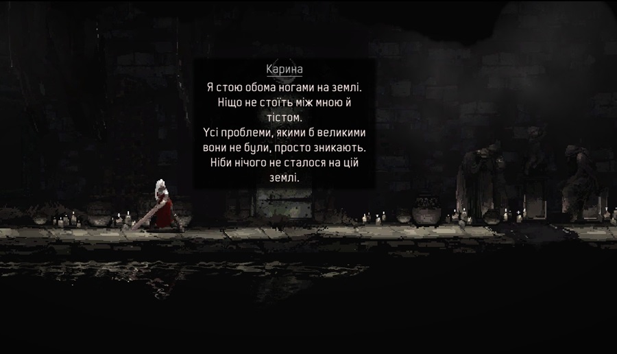 Все досить класично і…мінімалістично? Мабуть, що так. Гра відчувається “пробою пера”, коли зібрались троє творчих людей, і вирішили створити щось просте, але цікаве. І тут є два варіанти сприймання кінцевого продукту, бо з одного боку це перший проект студії, з іншого є цілком собі добрий приклад гри, котра розроблялась всього двома людьми, і вийшла повноцінною і дуже цікавою. Мова, звісно ж, про Salt and Sanctuary. Так от.