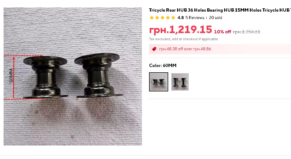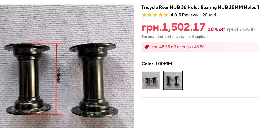 Цікавіше, що в цього ж продавця є варіант втулок на 100 мм, які найвірогідніше мають підходити під триколісні фетбайки типу Ardis і, можливо, Velomotor.
