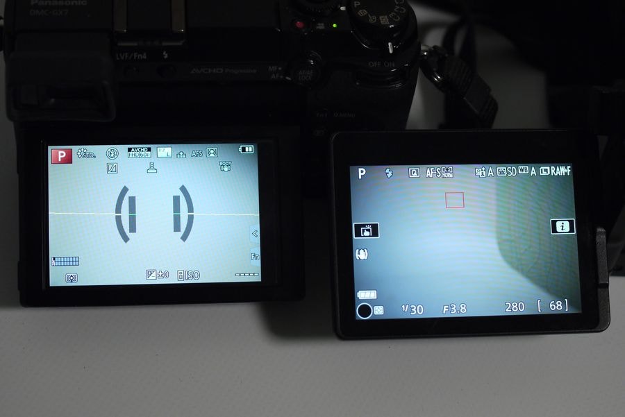 GX7 за свою ціну має хоч і не поворотний, але похилий сенсорний екран, що дозволяє з комфортом знімати сцени з різних ракурсів. Крім похилого екрана у нього є електронний видошукач, що в цьому ціновому сегменті є тільки у даного фотоапарата. Наявність відразу двох коліс управління параметрами, кілька кнопок, що налаштовуються (відразу бачу 4 штуки), кілька налаштованих режимів зйомки, вбудований в камеру стабілізатор (не самий наворочений, але він є на відміну від Nikon), і, що найбільш для мене актуально і приємно – електронний затвор. Останній дозволяє, не замислюючись над ресурсом механічного затвора, робити будь-які серії та експерименти, які вам тільки заманеться реалізувати. Складно навіть пояснити, наскільки широку свободу творчості це відкриває, адже в голові у вас перестає зі клацанням затвора клацати думку про те, що великий пробіг камери може з часом привести до дорогого ремонту. Ще на відміну від дзеркальної камери від Nikon, у GX7 (який вийшов на 1.5 року раніше) є focus peaking, що дозволяє наочно бачити точку фокусування як в режимі live view, так і через електронний видошукач. Дзеркальний конкурент у цьому плані може похвалитися лише “далекоміром”, який лише умовно схожий за своєю зручністю.