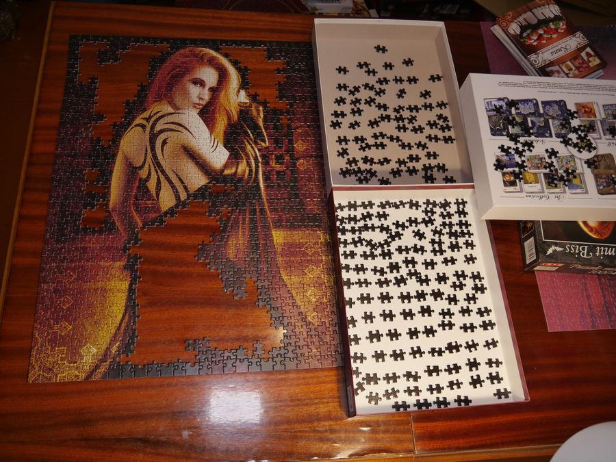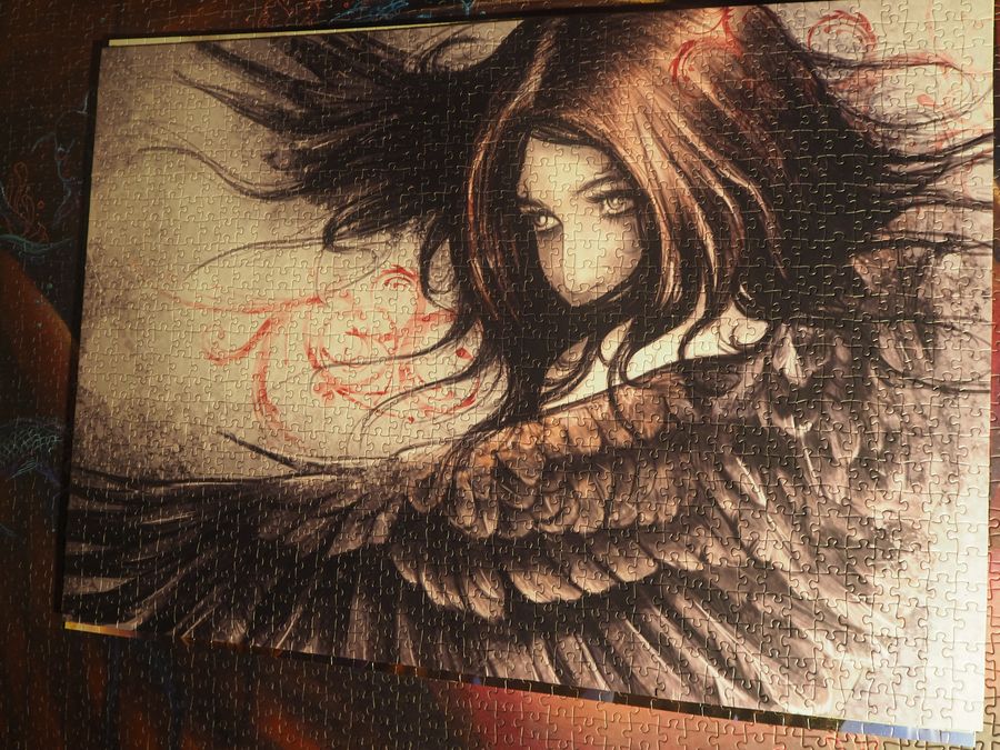 Не дивлячись на малий розмір пазла (всього 1000 елементів), складати його було дуже непросто. В якомусь сенсі ті картини, що були до нього (авторства Misstigri виробника Grafika) складалися набагато простіше, незважаючи на те, що їх було 2000 елементів. У сухому залишку поки що збирав картинку я встиг у неї закохатися, тому в результаті ставлення до малюнка стало нейтральним. Але якість…скажемо так – зараз пазли цієї фірми складно знайти, і…добре що їх складно знайти 🙂
