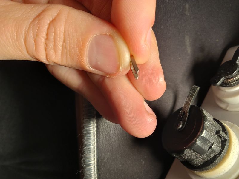 Зробивши надпил на одній половині, як на фото (з усіх боків) мені здалося, що магніт все одно міцно чіпляється. Ще трохи сточивши у другої лапки 2 грані магніт став досить легко від’єднуватися. В цілому метод хороший, але я не став би кілька разів розбирати/збирати тушку K-S2, якби виявилося, що з часом він перестає працювати, тому рекомендую другий варіант.