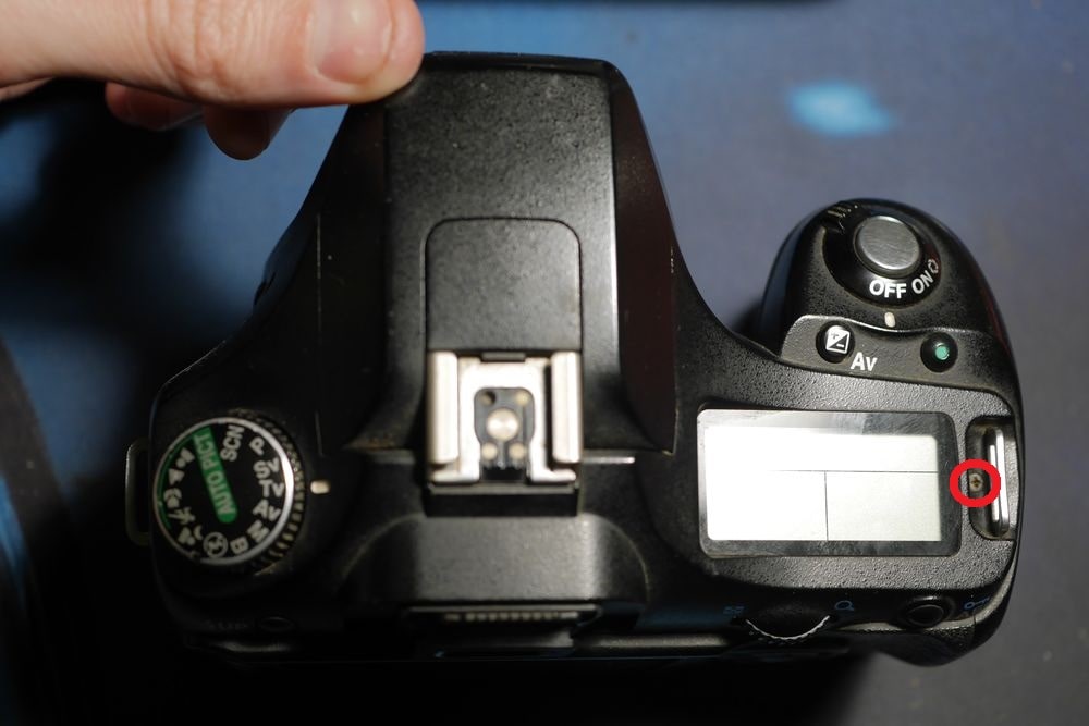 Як ви могли помітити, тут помічені всі болти, у тому числі ті, що відносяться до верхньої панелі. Розібрати фотоапарат без знімання верхньої панелі неможливо. На одному з фото велике коло зі знаком оклику – перед тим як знімати передню панель, варто перевести перемикач автофокусу в режим ручного фокусування (М). Це викликано розташуванням перемикача на самій платі, щоб передню панель було зручніше зняти та встановити назад.