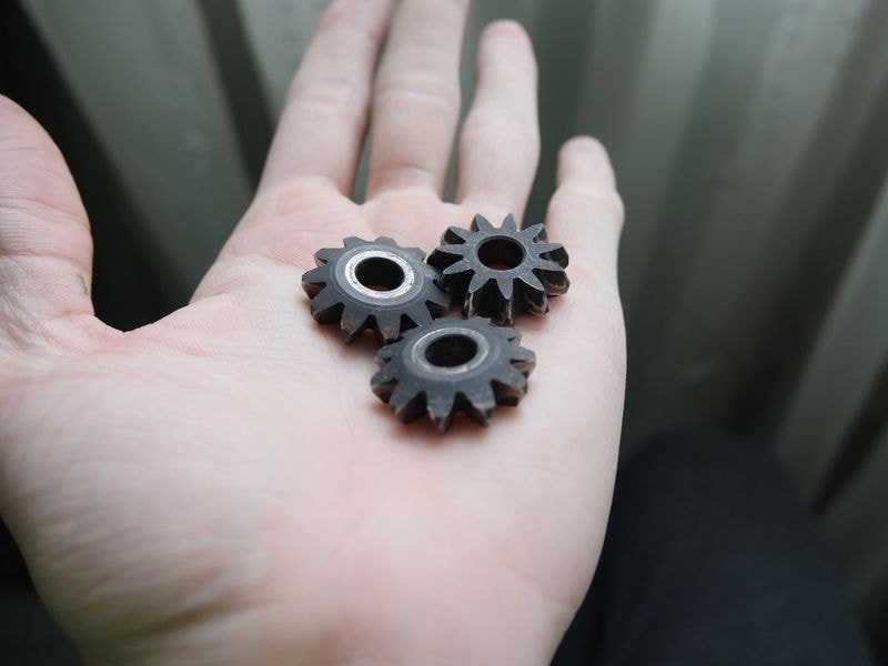 За час служби на одній із шестерень утворився скол. Скіл незначний і не припадає на основну частину робочої поверхні, тому навряд чи заважатиме якісній роботі. Більше запитань я мав до підшипників.