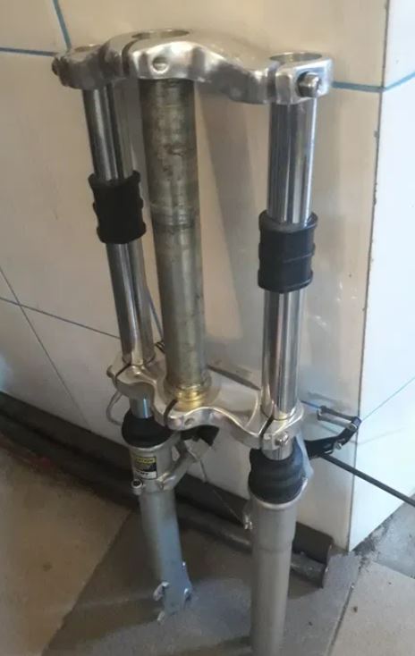 Вилка була під дискове гальмо + V-brake, її “двокоронне” регулювання дозволило мені без проблем вибрати висоту вилки, яка мені буде необхідна, а конструкція, знову ж таки, що передбачає наявність двох корон, дозволила самою короною її закріпити намертво в рамі. Так, знаю, ви скажете що “це ж неправильно”, “під таку вилку потрібен інший винос” – і ви будете праві, але в конкретно даному випадку це було єдине рішення, яке дозволило з одного боку зберегти комфортну висоту керма, а з іншого мати і дискове гальмо, яке у разі електровелосипеда куди корисніше, ніж ободне.