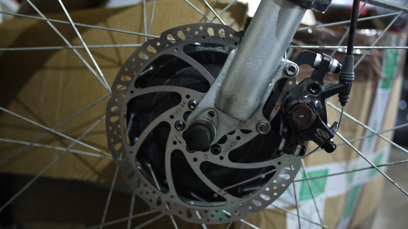 Одна з головних ідей всього цього було бажання встановити дискове гальмо на велосипед. І це вдалося повною мірою. Був встановлений мій улюблений Avid BB7 , з яким велосипедзагальмувавзажив за новим. Гальма працюють чудово, дозволяючи у разі потреби намертво зупинити велосипед на місці. У випадку з його високою вагою часом це буває вкрай необхідно, тому це того варте.