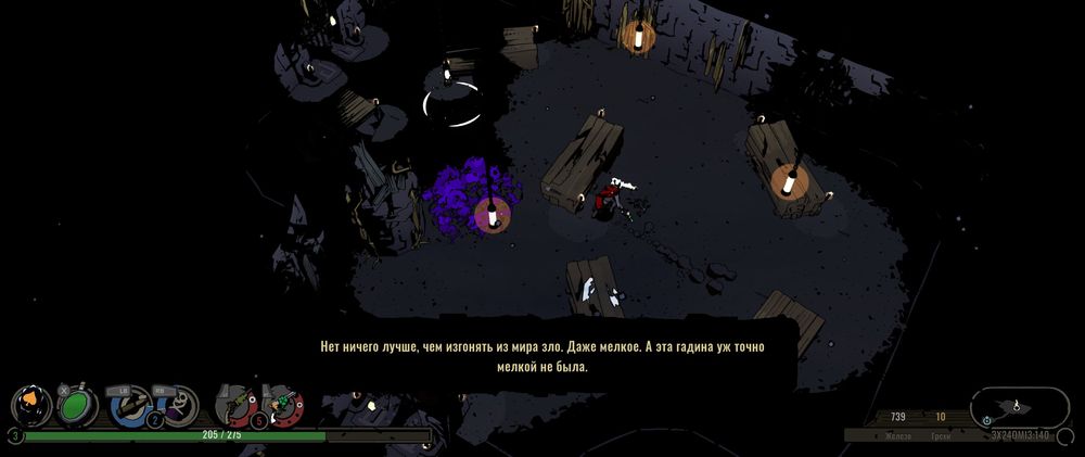 До речі, як ви помітили, скріншоти дуже “плоскі”. Справа в тому, що гра повноцінно підтримує широкоформатні монітори. У цьому гра навіть перевершила Dead Cells, у якого (навіть через купу апдейтів) темні смужки з боків. За це окреме спасибі розробникам!