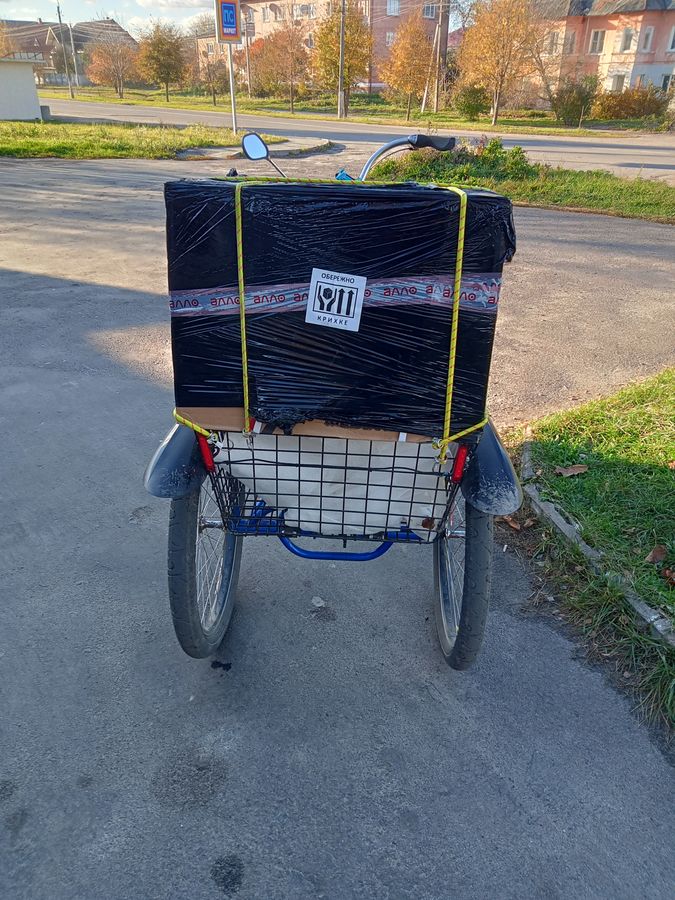 Як видно по знімку вище, окрім того що я віз на ровері габаритний вантаж вагою 28.5 кг, робилось це ще не варіанті триколісника, котрий був без мотора. Відповідно, навіть самотужки немає проблем перевозити щось таке на такому типу велосипедів. Тим більше, що на триколіснику стійкість вантажа один з найбільших плюсів – не потрібно тримати рівновагу речі, котра перевозиться.
