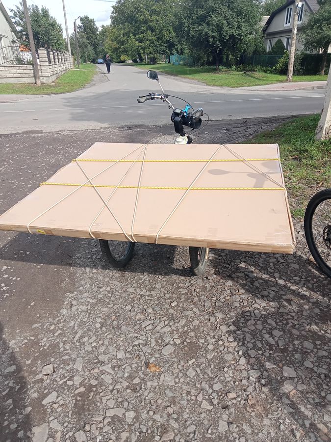 Як видно по знімку вище, окрім того що я віз на ровері габаритний вантаж вагою 28.5 кг, робилось це ще не варіанті триколісника, котрий був без мотора. Відповідно, навіть самотужки немає проблем перевозити щось таке на такому типу велосипедів. Тим більше, що на триколіснику стійкість вантажа один з найбільших плюсів – не потрібно тримати рівновагу речі, котра перевозиться.
